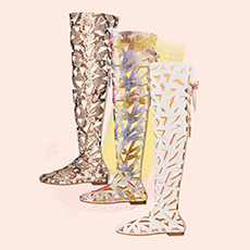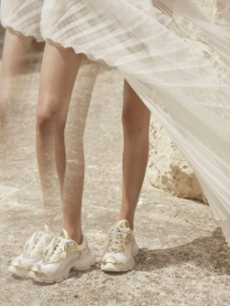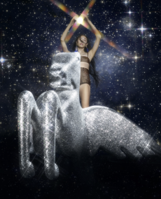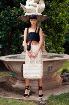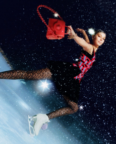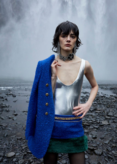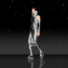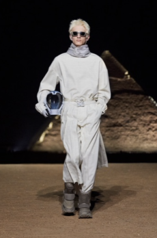 The classic Chanel skirt suits is also reinvented with matching shorts and completed with sequined tights and half gloves. It’s a fantasy as out of the best interstellar tale, and we hypnotically want to be part of it. Sparkling signature tweed in metallic silver, white electric blue and Karl’s favourite powder pink, together with the most glittery lunar boots would provide the perfect mise for our final space mission to escape this tired Mother Earth.