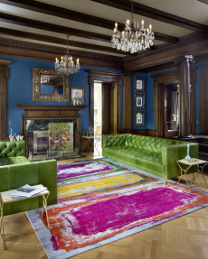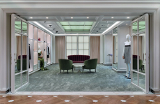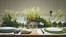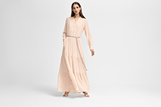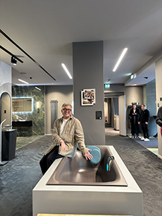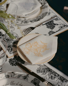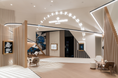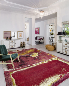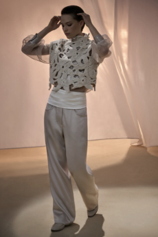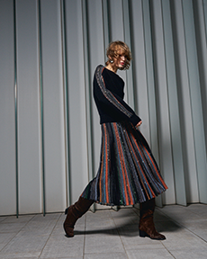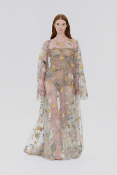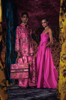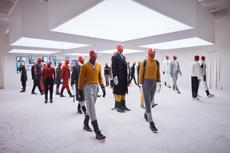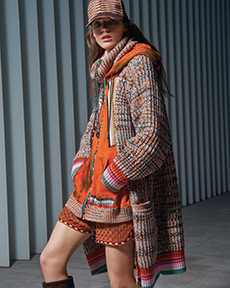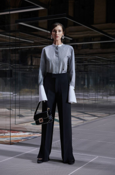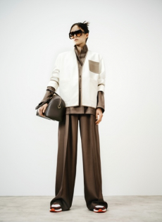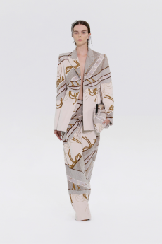 The collection places color at its core, expressed through nuanced mélanges, artistic prints, and balanced contrasts between earthy and sunlit tones. Signature silhouettes are reinterpreted with a sense of lightness and refinement, while the free, horizontal layout of the presentation mirrors the weightless elegance of the garments. Carpets dyed in the collection’s palette, reflective surfaces, and sculptural furniture create an immersive environment where fashion, art, and architecture meet.