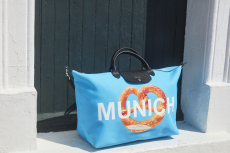 This whimsical journey began in 2019 with Catogram, a playful dialogue between Coddington’s cats Pumpkin and Blanket and Nicolas Ghesquière’s dogs, Achille and Léon. Today, her current muses — Blondie, Blanket, and Jimi — venture even further, roaming from Sydney to London, the Amazon to the Great Wall of China, and even into space. Their travels inspire a series of graphic patches reminiscent of labels once adorning Louis Vuitton trunks, charting destinations near and far.