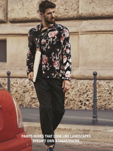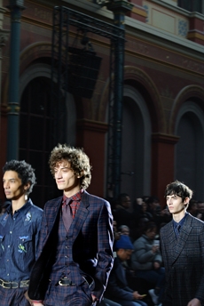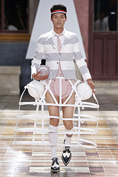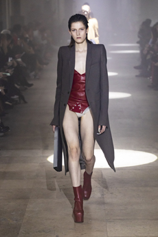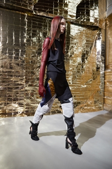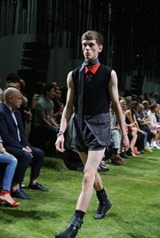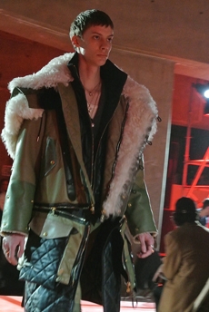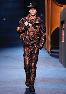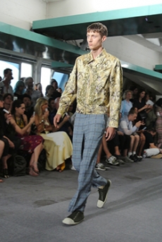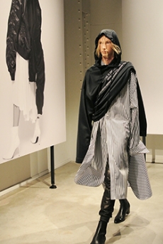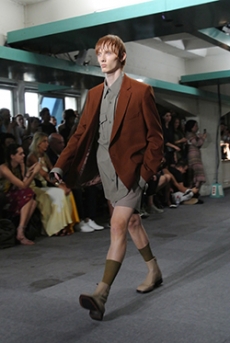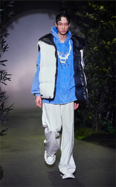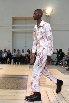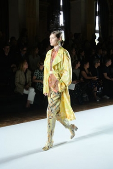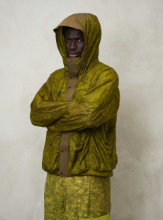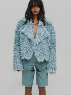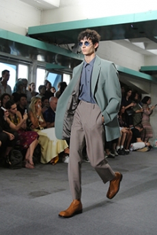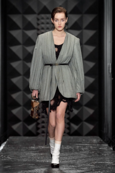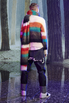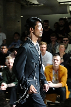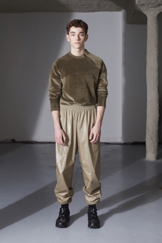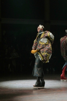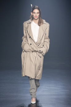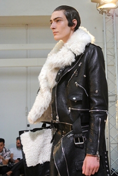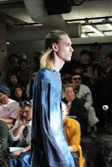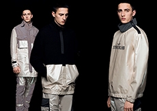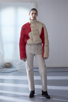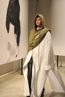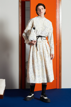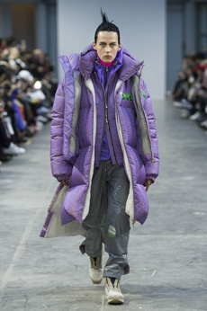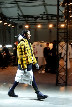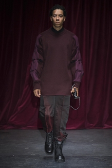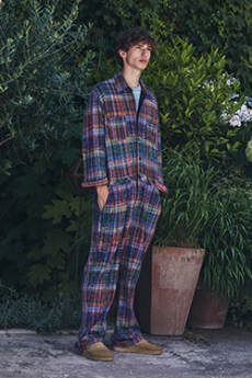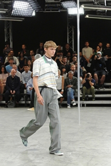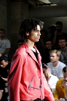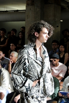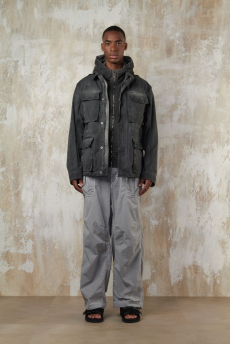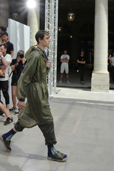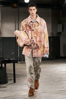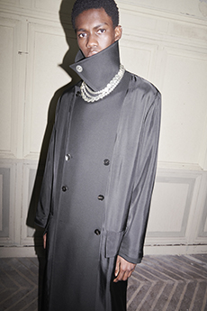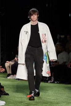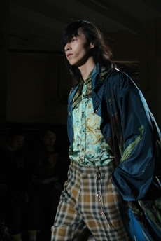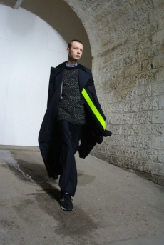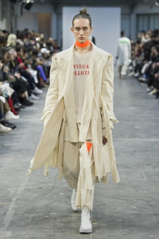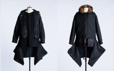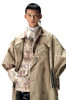 Reaching out to our inner adolescent, the collection revolves around the concept of deconstruction that is obtained with sophisticated methods of shaping and layering. Mixing Eastern and Dadaist aesthetics, designer Masanori Morikawa plays with classic tailored jackets worn like kimonos wrapped around T-shirts and striped pajamas. Trench coats morph into tunics and army bombers and denim jackets are ripped into and skinned to expose their bone structure.