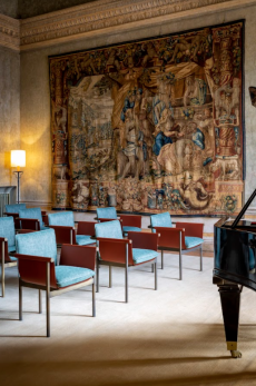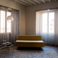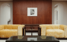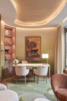 The design integrates art and design across eras, with works by Gio Ponti, the Scarpa family, Osvaldo Borsani, Marco Zanuso, Aldo Tura, and Gaetano Pesce. A specially commissioned table by Vincenzo de Cotiis anchors the space, further reinforcing Saint Laurent’s dialogue with Italian creativity.