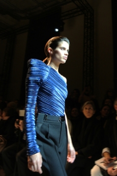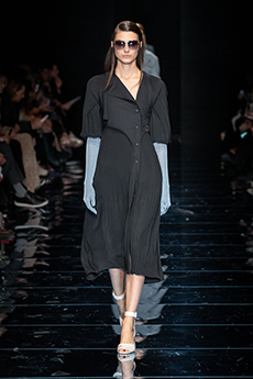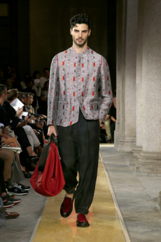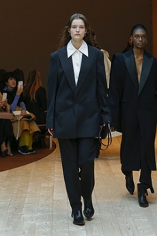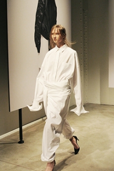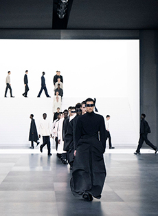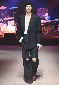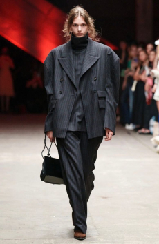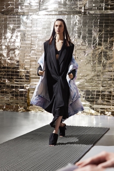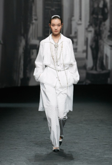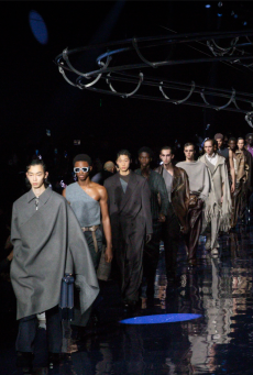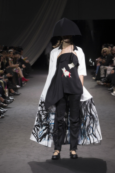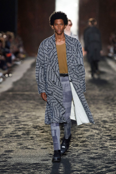 The collection synthesizes magnetically these feelings of attachments to identity and the exciting search for the new. Yohji Yamamoto showed once again the unconditional pure beauty of staying true to oneself.