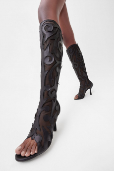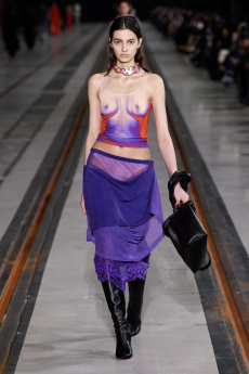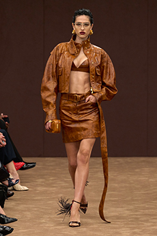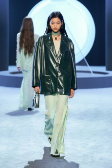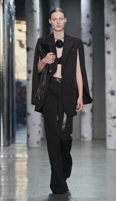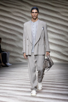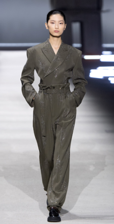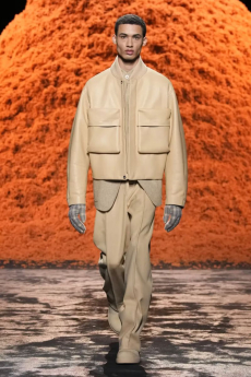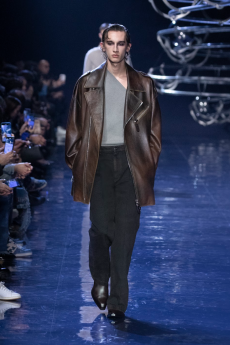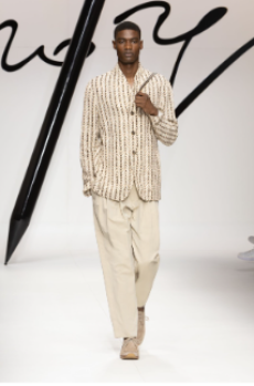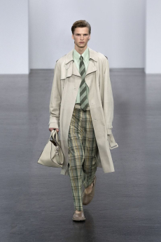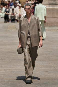 Tailoring stayed central but softened: light suits, broad-shouldered jackets, and pleated trousers came styled with undone ties, see-through shirts, and cummerbunds worn low. A standout finale featured a floor-length chocolate leather coat and a sheer gauze shirt - a nod to the duality between order and rebellion. In a world that craves definition, BOSS leans into ambiguity and finds elegance there. SS26 proves that being your own BOSS means owning every contradiction.
