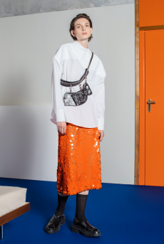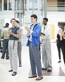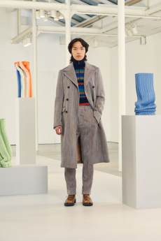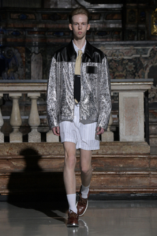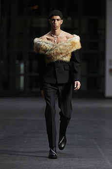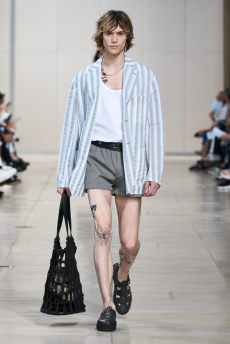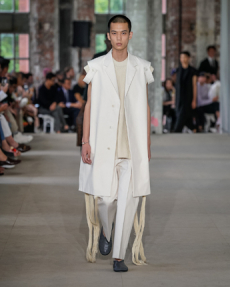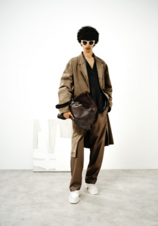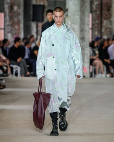 Morikawa’s collection is imbued with duality - certainly the epitome of youth itself – and that uncertainty and struggle of reaffirmation of young individuals. We see relaxed men’s cut shirts that reveal an incredible heavy textile at the touch, deconstructed jackets that show the lining on the outside, lurex raw materials, all surprisingly soft to the touch.