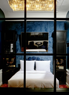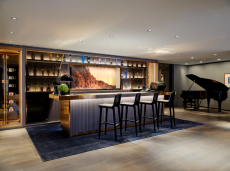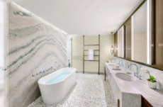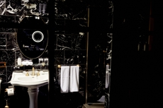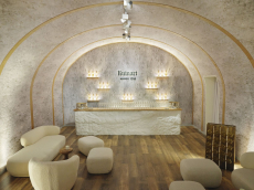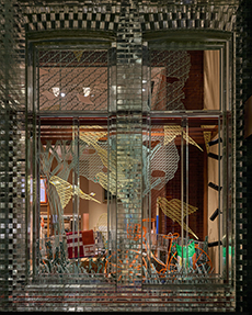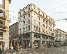 Originally constructed in the 1500s and later rebuilt in 1952, the three-story building embodies a dialogue between history and modernity. Its limewashed exposed brickwork reveals the raw texture of centuries past, contrasted by luminous back-lit onyx walls. Traditional Lombard Ceppo di Gre stone grounds the floors, while Marmo di Candoglia — famously used for Milan’s Duomo — brings refinement to the interiors.