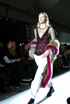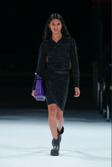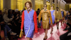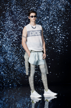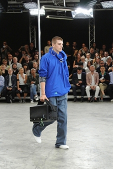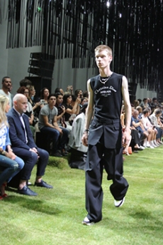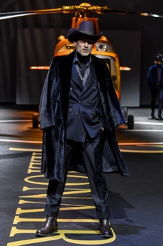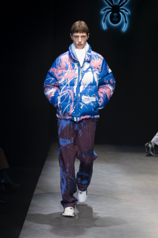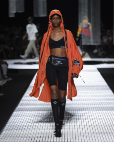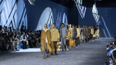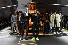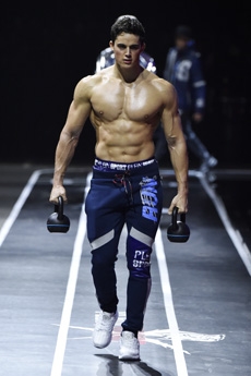 On a runway made over to resemble a racetrack, models, boxers and workout fanatics presented the first ever Plein Sport line. The collection features sweatshirts, puffer gilets and bombers, among many other fitness apparel favourites, fusing cutting-edge technology with luxurious materials.