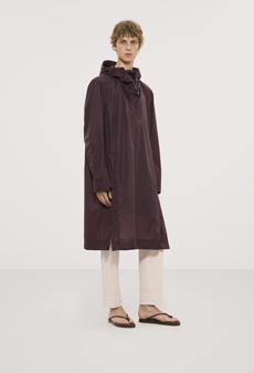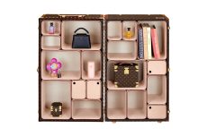 True to Louis Vuitton’s origins, Coddington embraces the art of packing. An exclusive line of plum-colored foldable nylon bags, including a Keepall that flattens completely, demonstrates her mastery of space and function. The highlight: her secretary trunk, inspired by the historic Stokowski trunk, outfitted with drawers, an easel, and even a nook for her cats.