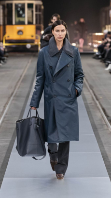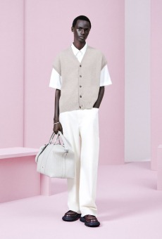 Leather goods and new bags are displayed on 20th-century Italian furnishings, forming a subtle dialogue between past and present. The result is a presentation that goes beyond the runway format, positioning Loro Piana not only as the master of fibres but as a cultural interlocutor, weaving together heritage and innovation.