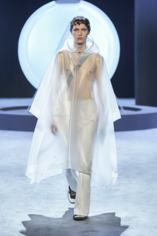 “It was boundless blue, almost transparent. I stood up, and as I walked toward my own apartment, I thought, I want to become like this glass. And then I want to reflect this smooth white curving myself. I want to show other people these splendid curves reflected in me” The melancholic closing words of Ryu Murakami’s Almost transparent blue - one of the most striking Japanese contemporary novelists exploring the themes of youth and drug abuse - echoed in Masanori Morikawa’s new Fall Winter 2017 collection for Christian Dada.