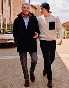 A free, real and passionate exchange that bridges a generational gap and lies at the heart of Ermenegildo Zegna's philosophy. A merging of the intensely artisanal and industrial elements that form the brand's DNA and expresses its values.