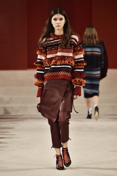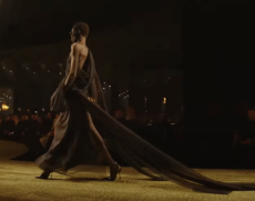 Inspired by musical counter culture, free and fluid silhouettes mixed and matched with generous draping, patterned knitwear and elongated evening wear. Sneak peeks from the runway are given together with backstage scenes to present a collection that is nothing but common.