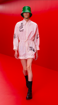 Yet Morikawa presented a collection with a composite of Japanese nostalgia. Like the summer nights spent wearing Jinbei – but here transposed in leather and denim – or those high school times – with the tartan motifs from school uniforms juxtaposed here with urban silhouettes. Christian Dada is beautifully grown up and we are looking forward to seeing the evolution of the brand.