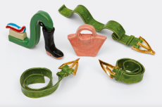Accessories extend the narrative — pumps bound with cords, square-toed driving shoes, the rounded La Ferrari Dino Bag, the angular Nello Tool Case, jewels shaped like bolts and padlocks. Each piece resonates with the pragmatic poetry of the workshop.