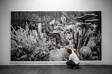 There's a garden of plants and animals. Inhabited by signs, symbols and archetypes invoking and recalling remote worlds, blending the conscious with the unconscious as imagination forces the inertia of reality. This alchemist's garden is an anti-modern laboratory that refutes rigidity and determinism, aiming instead to recover the complexity of existence with the contradictions that permeate it.