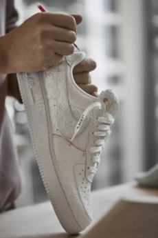 Checked coats with embroidered foliage, denim printed with flying doves and adorned with golden leaves by London based jeweller Duffy. Exquisite knitwear permeates the whole collection, both for men and women, featuring the brand’s signature bar logo. In all its wearability Seeing Things – as named by Abloh - is a romantic and ambitious collection yet staying true to OFF-WHITE’s identity rooted in the streets.