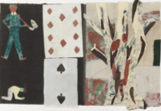 Here, the artist presents a land of fragments of memory, as if a glimpse into the mind of a young soul, with many techniques appearing akin to those painted by a child, something Picasso mastered, yet with intersecting themes and imagery full of meaning and maturity. He asks us to confront the fragility of our own memory, and to look into the unconscious where the truth may lie.