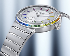The watch is built in black DLC-coated Grade 2 titanium. Lightweight. Matte. Uncompromising. Its strap draws from New Balance’s Energy Arc technology — engineered for motion, shaped for comfort. Violet, midnight blue, neon green. The palette is precise. No guesswork. Just alignment.