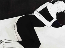 The show will consist purely of new works representing an arresting close-up of a single figure, lying reading, resting, sitting curled up, unaware of the viewer’s gaze because “it’s more like a sudden glimpse-something unexpected. These figures do not offer contact. Their faces are blank, vanishing.” As the artist herself said.
